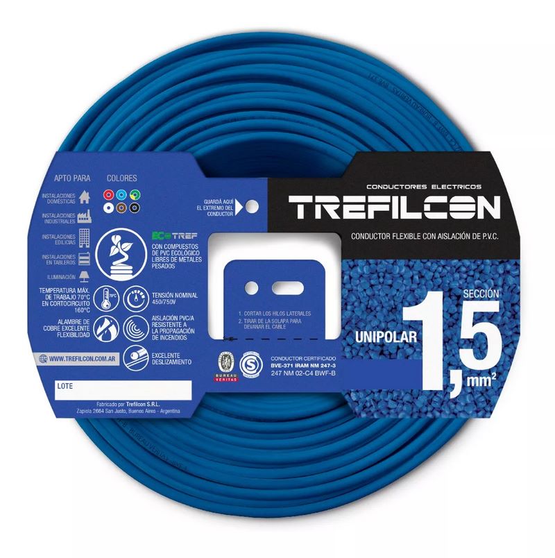 CABLE UNIPOLAR NORMALIZADO 1,5 MM CELESTE cantidad