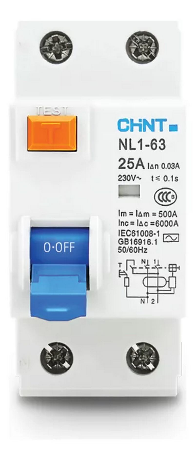 DISYUNTOR BIPOLAR CHINT NXL, 25A – 30MA – CLASE AC – 6KA
