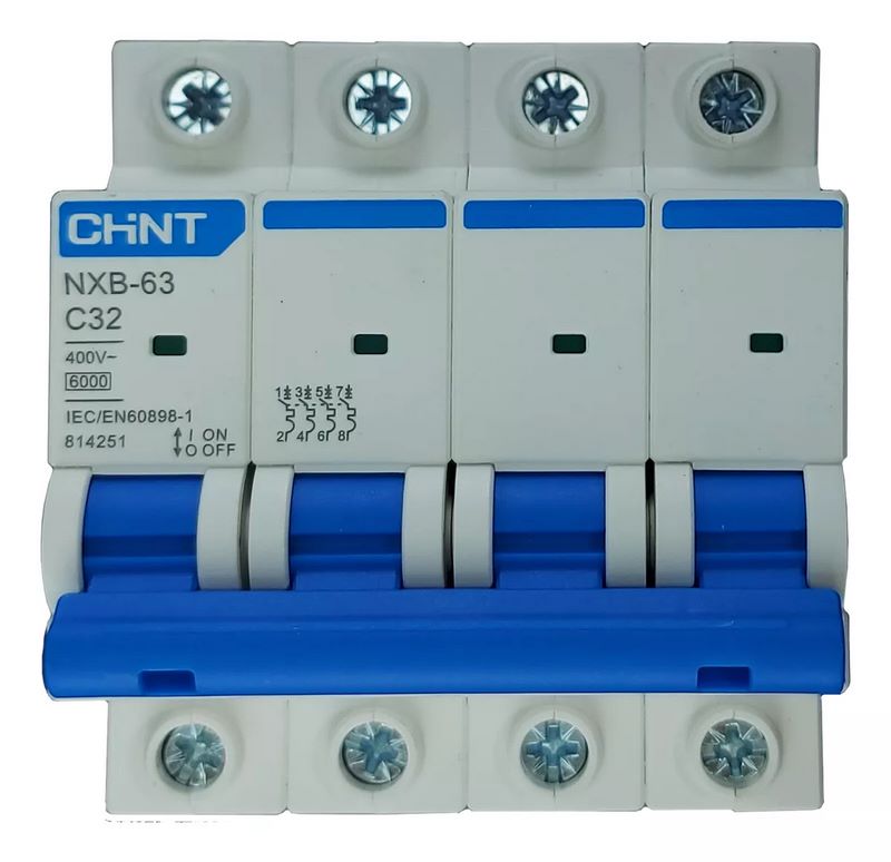 INT. TERMOMAGNÉTICO CHINT NXB-63, IN:32A, ICN:6KA, CURVA C, 4-POLOS