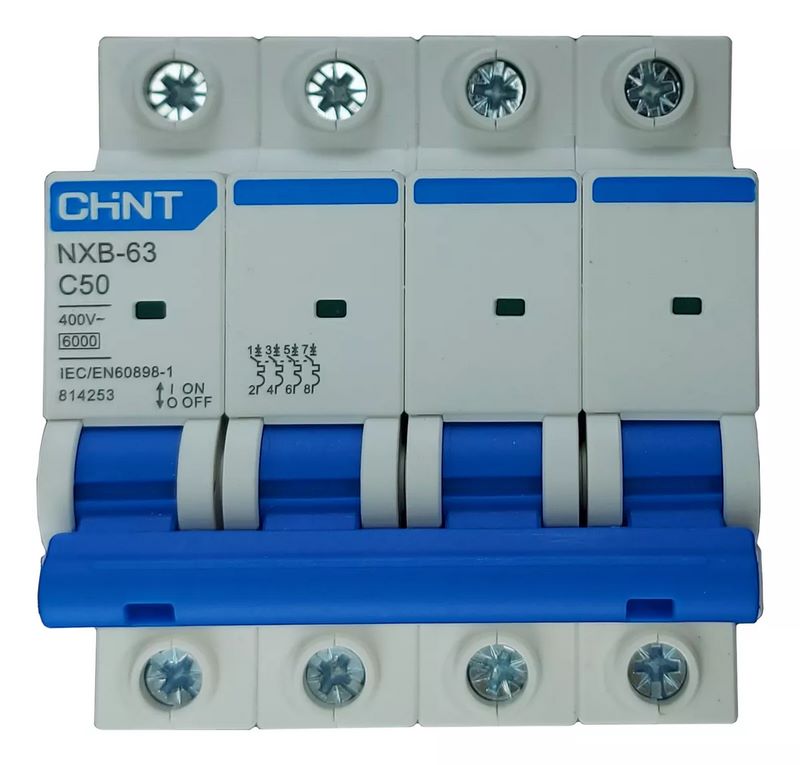 INT. TERMOMAGNÉTICO CHINT NXB-63, IN:50A, ICN:6KA, CURVA C, 4-POLOS